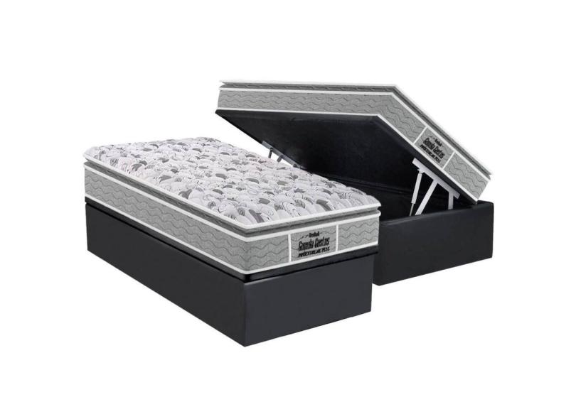 Cama Box Baú Solteiro: Colchão Espuma Probel D45 / EP Guarda Costas PróExtreme Plus Pillow Top + Base CRC Suede Gray(88x188)