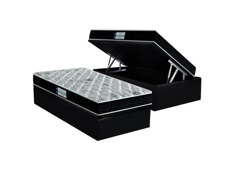 Cama Box Baú Solteiro: Colchão Espuma Probel D45/EP ProDormir Advanced Tech2000 Double Face + Base crc Suede Black(88x188)