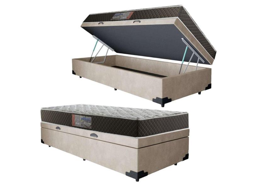 Cama Box Baú Solteiro Colchão Mola Bonnel Acolchões + Box Suede 65x88x188