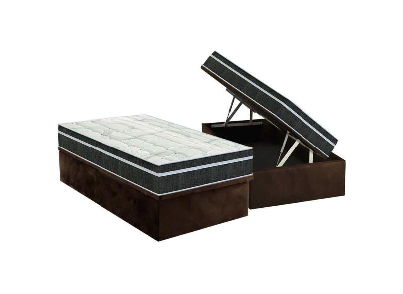 Cama Box Baú Solteiro: Colchão Molas Bonnel Orthoflex Venezia + Base Crc Suede Brown(88x188)