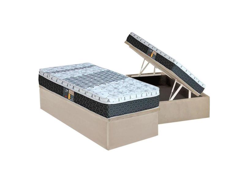 Cama Box Baú Solteiro: Colchão Molas Castor Bonnel System Class One Face + Base CRC Suede Clean(88x188)