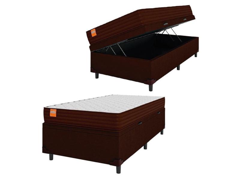 Cama Box Baú Solteiro Colchão Molas Ensacadas 88x188x63cm Marrom/Branco Suporta Até 200kg Por Pessoa