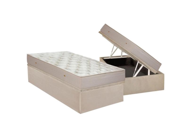 Cama Box Baú Solteiro: Colchão Molas Ensacadas Ortobom Hotelaria Nanolastic Orthotel SuperLuxo + Base crc Suede Clean(88x188)