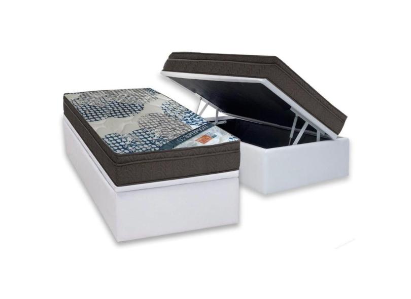 Cama Box Baú Solteiro: Colchão Molas Ensacadas Ortobom SuperPocket Fort Tech ISO + Base CRC Courano White(88x188)