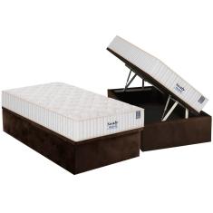 O menor preço encontrado no Brasil para Cama Box Baú Solteiro: Colchão Molas Ensacadas Plumatex Masterpocket Miami + Base Crc Suede Brown atualmente é R$ 1.591,77.
