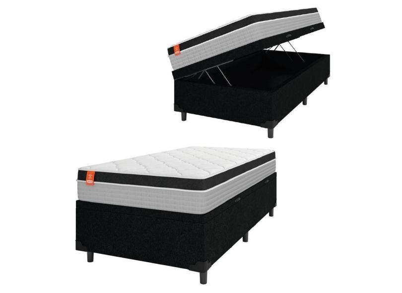 Cama Box Baú Solteiro Colchão Molas Ensacadas Real 88x188x68cm Preto / Cinza - Suporta Até 130kg Por Pessoa Preto