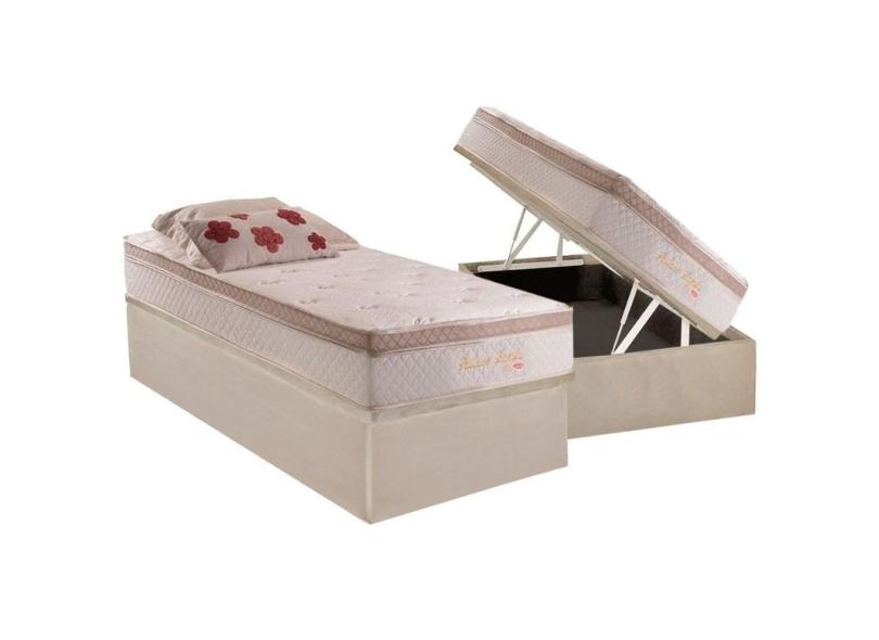 Cama Box Baú Solteiro Colchão Molas Herval Masterpocket Pallace Bambu Plusc Suede Clean(88x188)