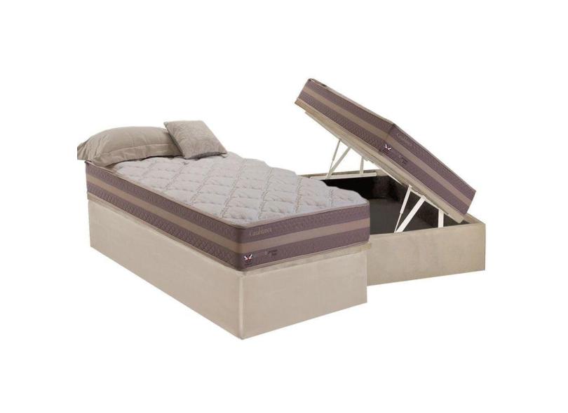Cama Box Baú Solteiro: Colchão Molas Herval Maxspring Casablanca + Base CRC Suede Clean(88x188)