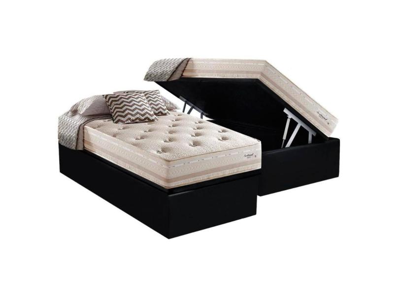 Cama Box Baú Solteiro: Colchão Molas Herval Maxspring Scotland + Base CRC Suede Black(88x188)