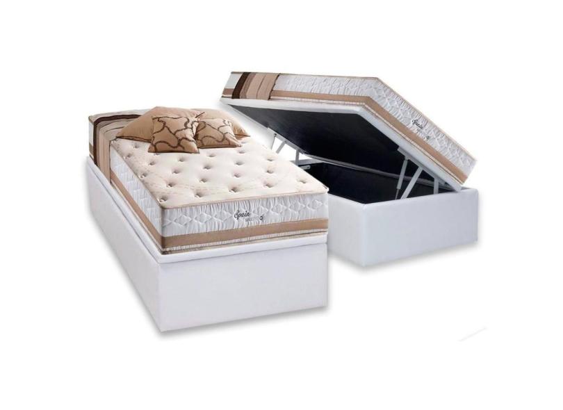 Cama Box Baú Solteiro: Colchão Molas Herval Maxspring Spain + Base CRC Courano White(88x188)