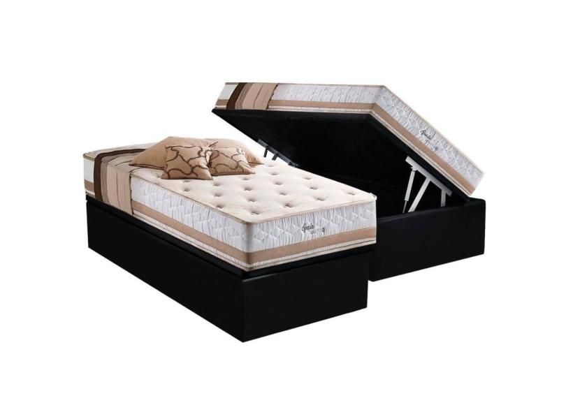 Cama Box Baú Solteiro: Colchão Molas Herval Maxspring Spain + Base CRC Suede Black(88x188)