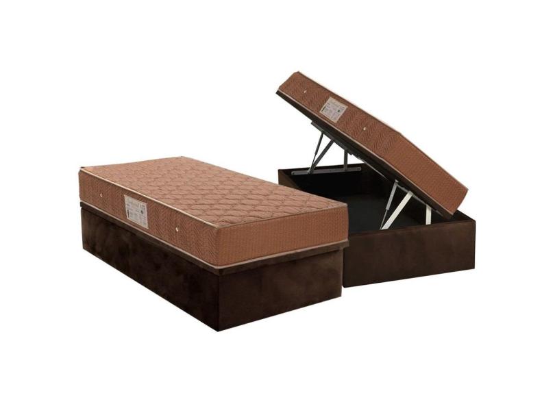 Cama Box Baú Solteiro: Colchão Molas Ortobom Hotelaria Multilastic Orthotel + Base crc Suede Brown(88x188)