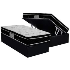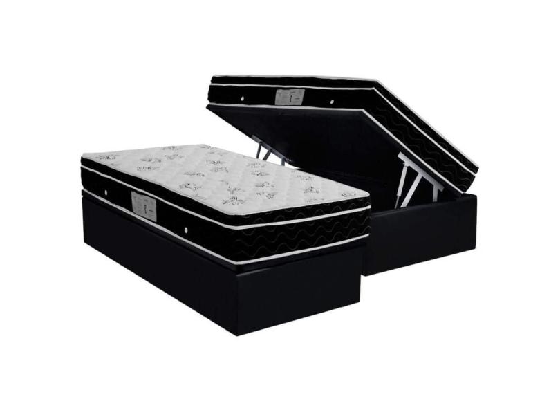 Cama Box Baú Solteiro: Colchão Molas Ortobom Nanolastic Physical Spring + Base CRC Courano Black(88x188)