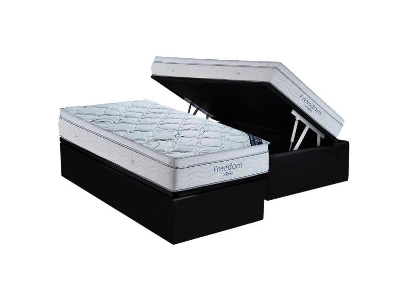 Cama Box Baú Solteiro: Colchão Molas Ortobom Superpocket Freedom + Base Crc Suede Black(88x188)