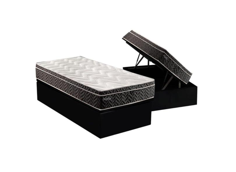Cama Box Baú Solteiro: Colchão Molas Paropas Extrapedic Olímpia + Base CRC Suede Black(88x188)