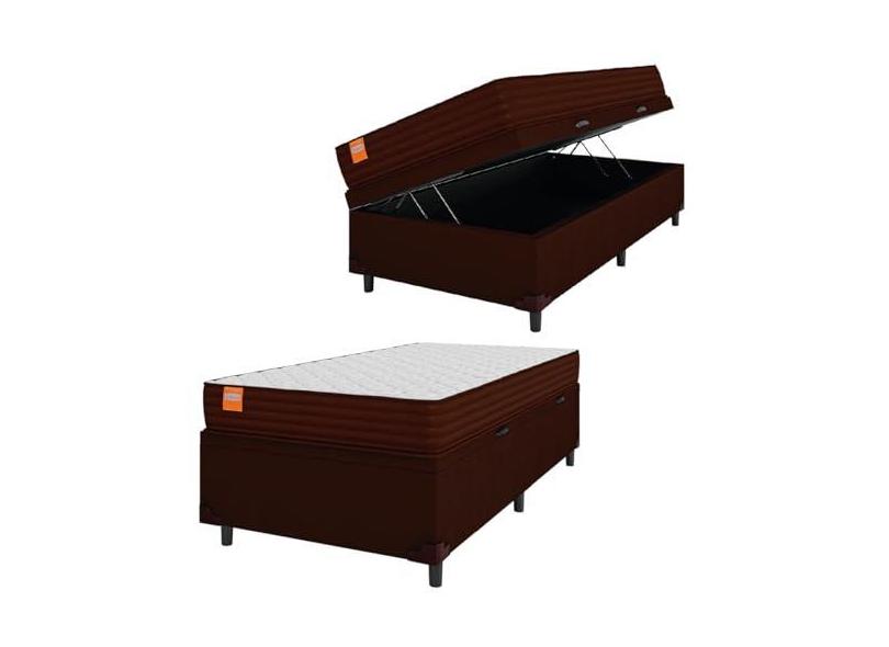 Cama Box Baú Solteiro Colchão Molas Qatar 88x188x63cm Marrom/Branco - Suporta até 200kg por Pessoa