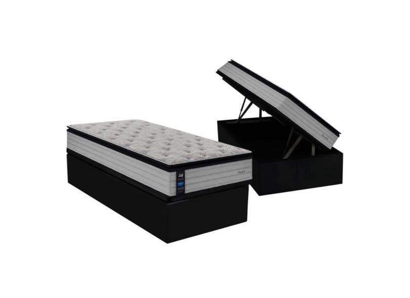 Cama Box Baú Solteiro: Colchão Molas Sealy Posturepedic Passion + Base CRC Suede Preto(88x188)