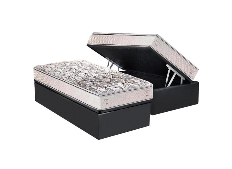 Cama Box Baú Solteiro: Colchão Ortopédico Double Face + Base Crc Suede Gray(88x188)