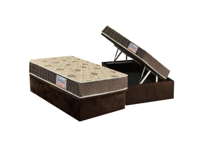 Cama Box Baú Solteiro: Colchão Ortopédico Orthoflex D33 / ep Matera + Base crc Suede Brown(88x188)