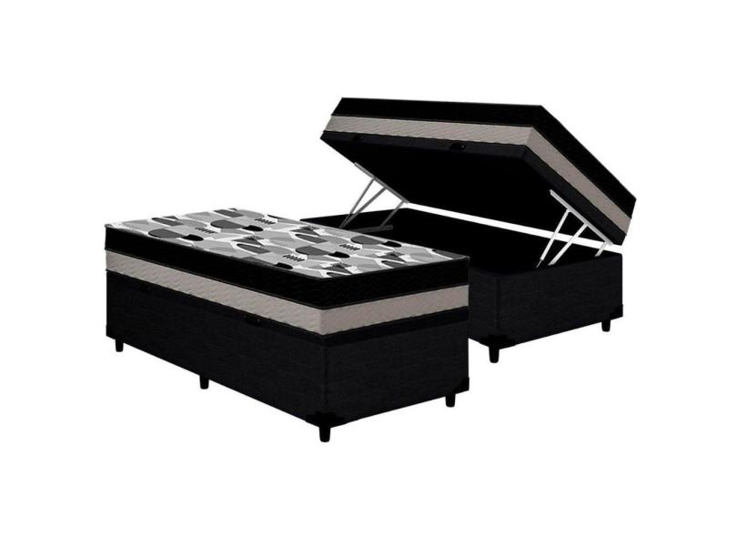 Cama Box Baú Solteiro: Colchão Ortopédico Ortobom D33 / EP ISO 100 Double Face + Base CRC CouranoBlack(88x188x20)