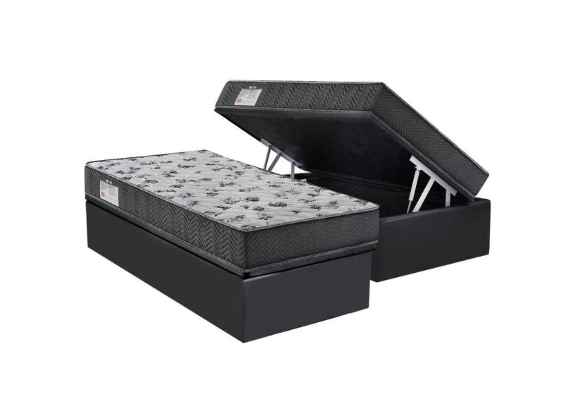 Cama Box Baú Solteiro: Colchão Ortopédico Ortobom D33 / EP ISO 100 Ultra Firme + Base CRC Suede Gray(88x188)