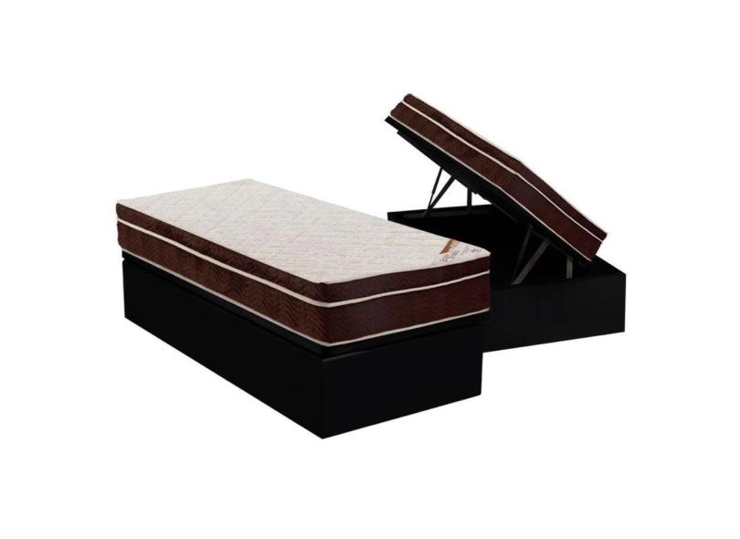 Cama Box Baú Solteiro: Colchão Ortopédico Ortobom Exclusive + Base Crc Courano Black(88x188)
