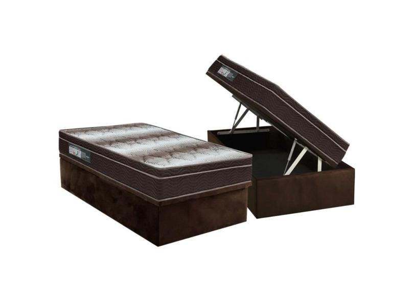 Cama Box Baú Solteiro: Colchão Ortopédico Ortobom Light + Base CRC Suede Brown(88x188)