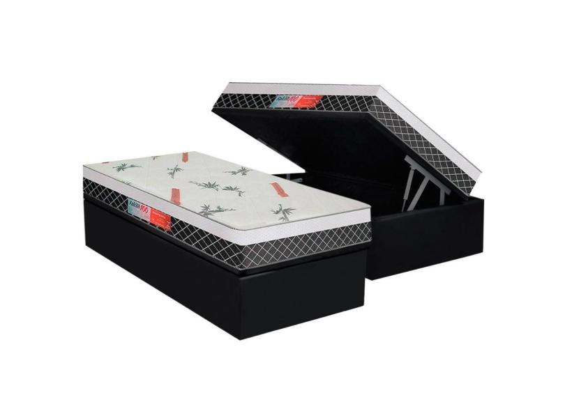 Cama Box Baú Solteiro: Colchão Ortopédico Plumatex Falcon Ultra Firme + Base CRC Suede Black(88x188)