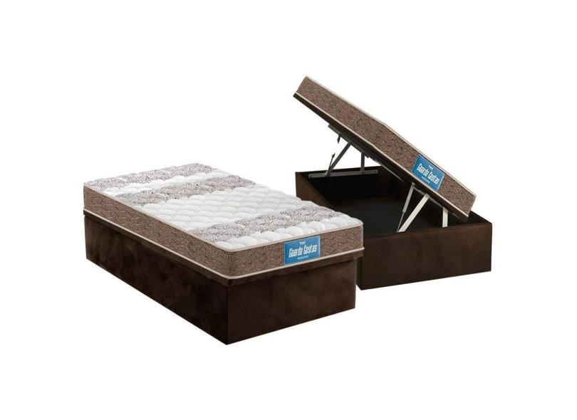 Cama Box Baú Solteiro: Colchão Ortopédico Probel D33 / EP Guarda Costas PróIntense Double Face + Base CRC Suede Brown(88x188)