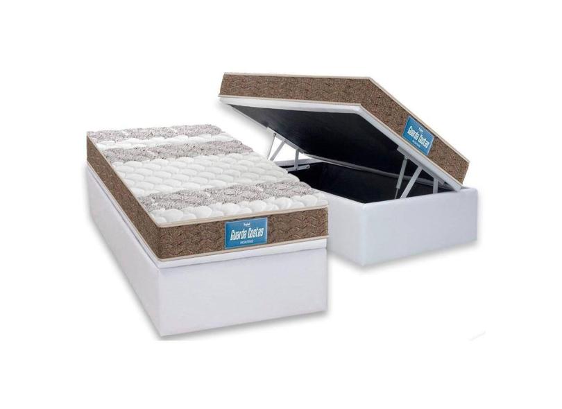 Cama Box Baú Solteiro: Colchão Ortopédico Probel D33 / EP Guarda Costas PróIntense Plus Double Face + Base CRC Courano White(88x188)