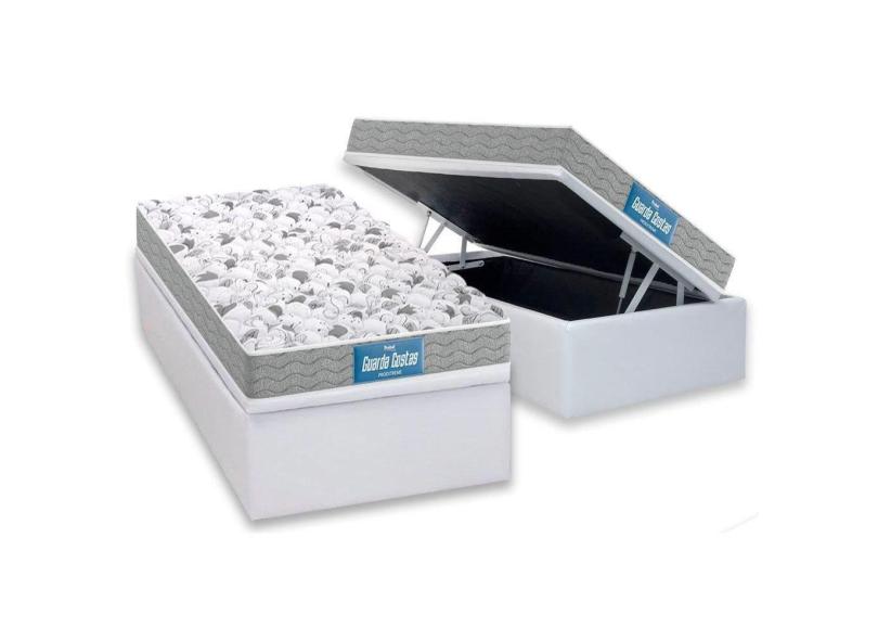 Cama Box Baú Solteiro: Colchão Ortopédico Probel D45 / EP Guarda Costas PróExtreme Plus Double Face + Base CRC Courano White(88x188)