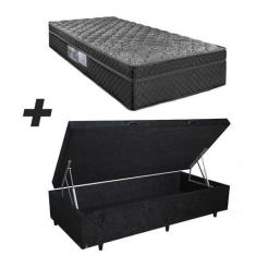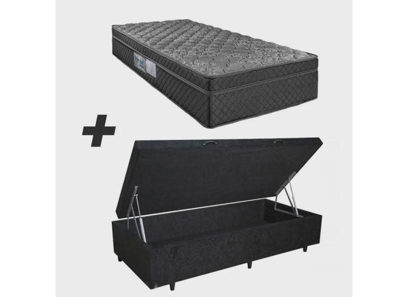 Cama Box Baú Solteiro + Colchão Portobel De Mola Arezzo Black Light