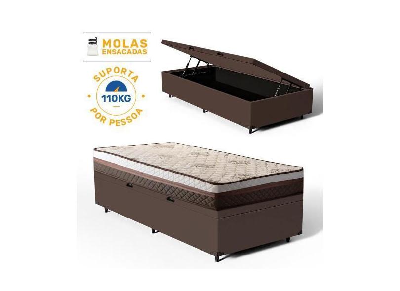 Cama Box Baú Solteiro + Colchão Siena Molas Ensacadas Marrom 88X188x6