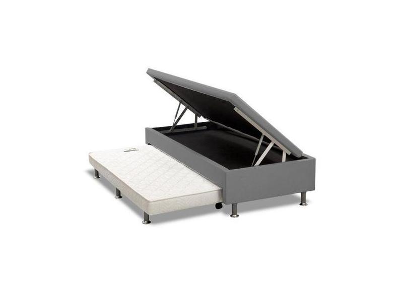 Cama Box Baú Solteiro Com Auxiliar Mola Bonnel Sintético Cinza 56X88x1