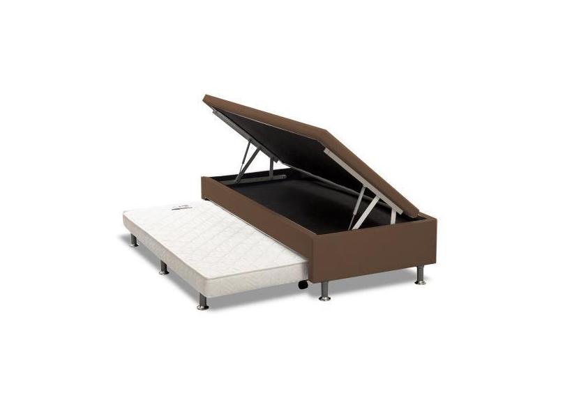 Cama Box Baú Solteiro Com Auxiliar Mola Bonnel Sintético Marrom 56X88x