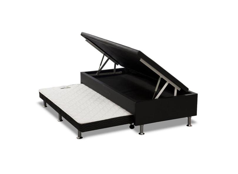 O menor preço encontrado no Brasil para Cama Box Baú Solteiro com Auxiliar Mola Bonnel Sintético Preto 56x78x188 atualmente é R$ 1.125,43.