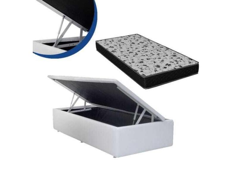 Cama Box Baú Solteiro Conforto Sintético Branco + Colchão Solteiro Conforto Espuma D33 20x88x188