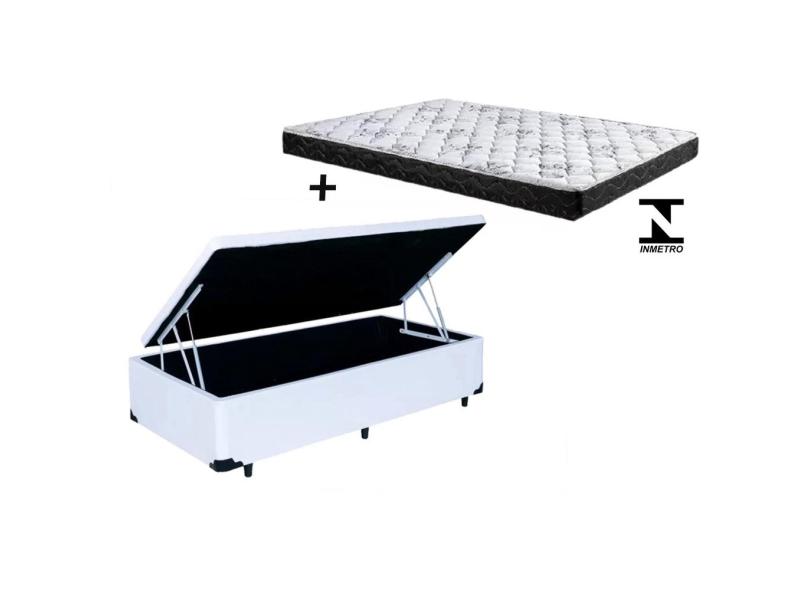 Cama Box Baú Solteiro Conforto Sintético Branco + Colchão Solteiro Conforto Espuma D33 28x88x188