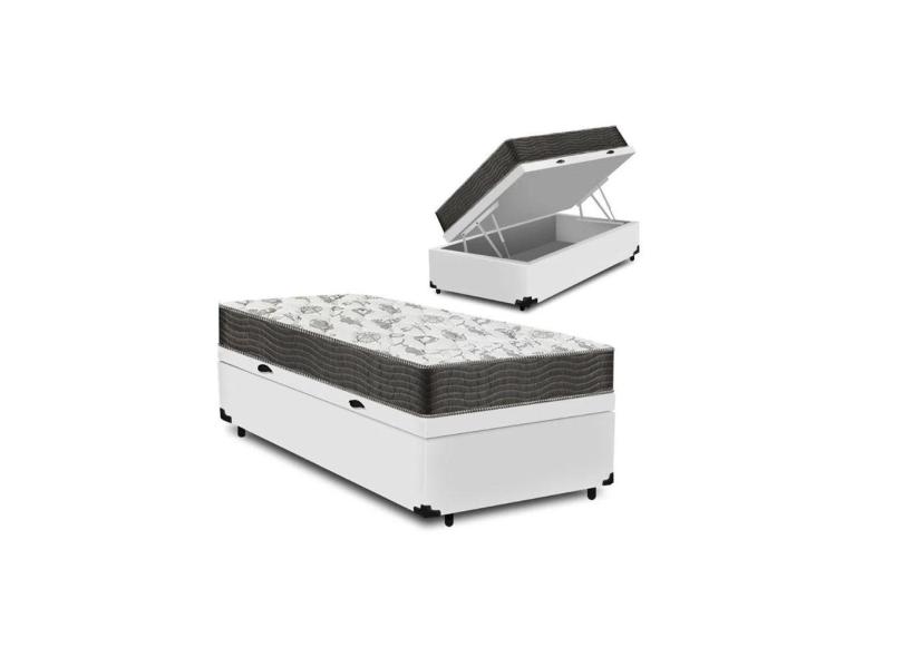 Cama Box Baú Solteiro Conforto Sintético Branco + Colchão Solteiro Conforto Espuma D33 Com EPS 30x88x188