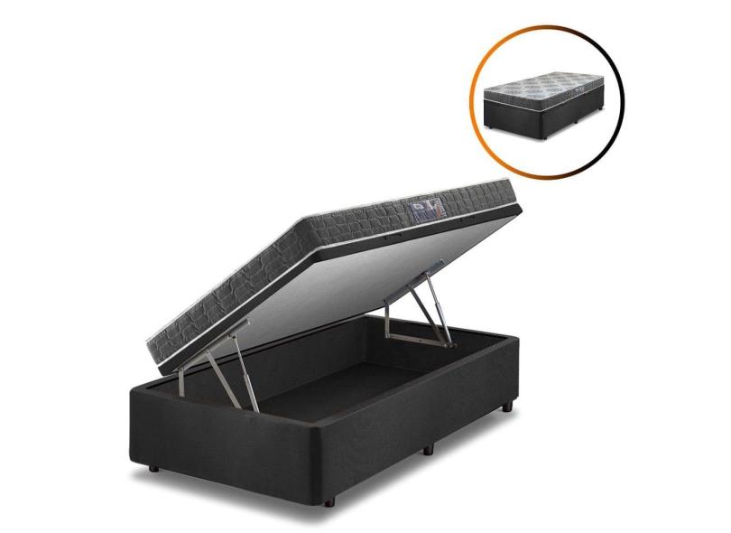 Cama Box Baú Solteiro Preta + Colchão Washington Espuma D23 Liso 88x188x56cm