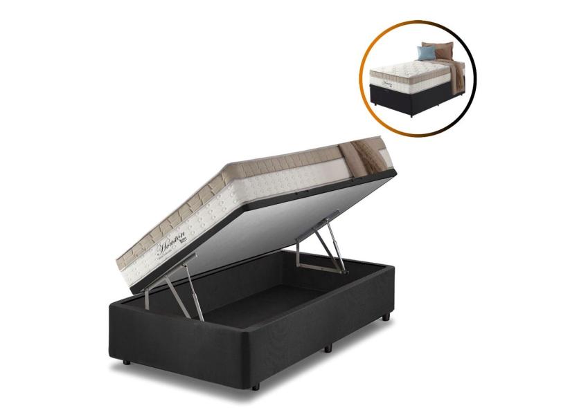 Cama Box Baú Solteiro Preto + Colchão Molas Ensacadas Houston Pillow Inn 88x188x70cm