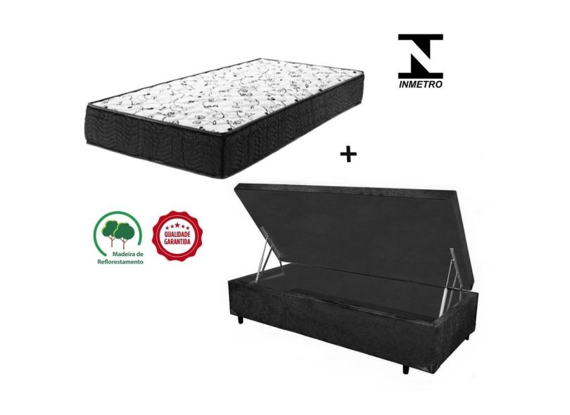 Cama Box Baú Solteiro Resistence Suede Preto + Colchão Solteiro Resistence Espuma D33 17x88x188