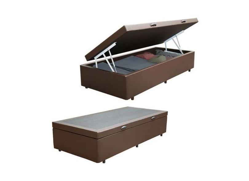 Cama Box Baú Solteiro Sintético Marrom EMTH 88x188x40 - Empório Mathia