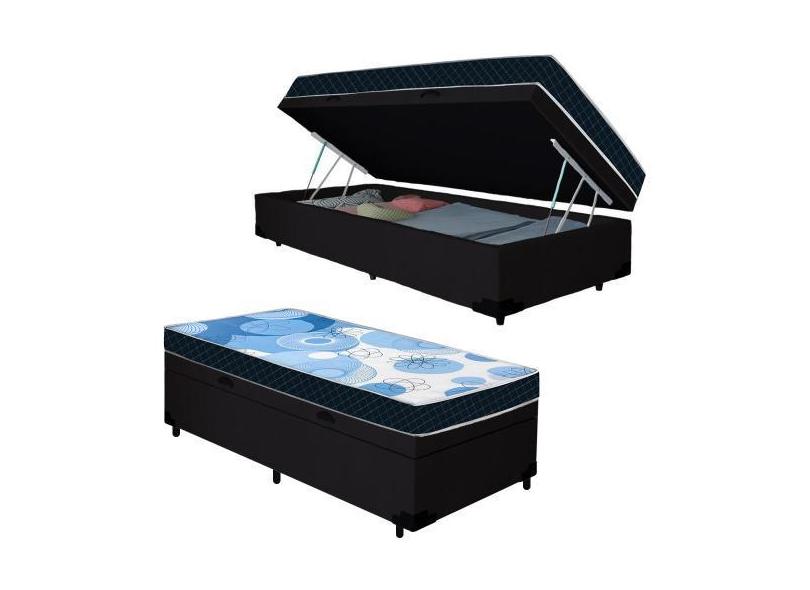 Cama Box Baú Solteiro Suede + Colchão D20 Omega Azul Valle 88X188x56 P