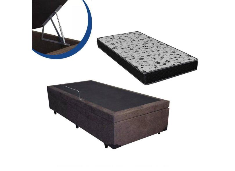 Cama Box Baú Solteiro Suede Colchão Espuma D33 Bordado+ Box Marrom 53x78x188