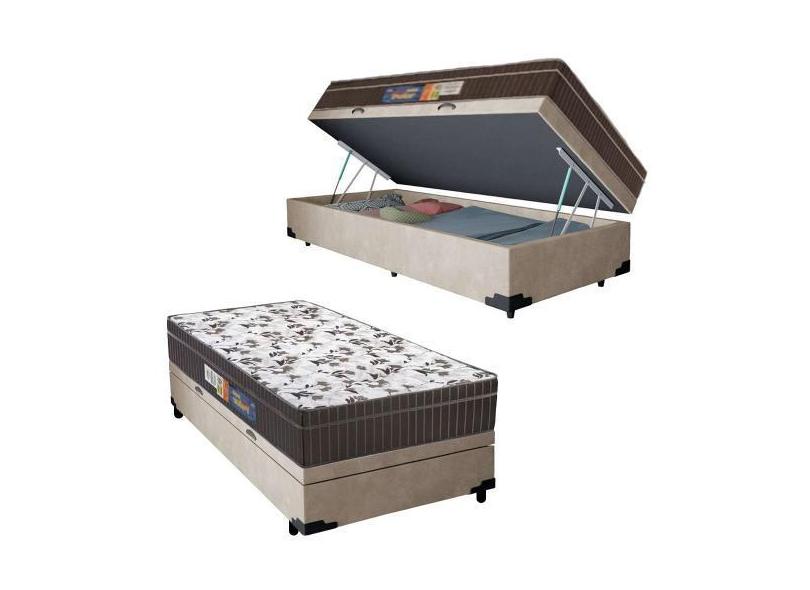 Cama Box Baú Solteiro Suede + Colchão Espuma Orthoface Polar 88X188x69