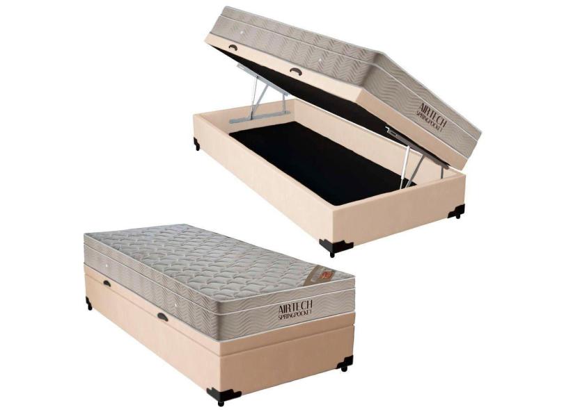 Cama Box Baú Solteiro Suede + Colchão Solteiro Ortobom Airtech Springpocket 59x88x188 bege