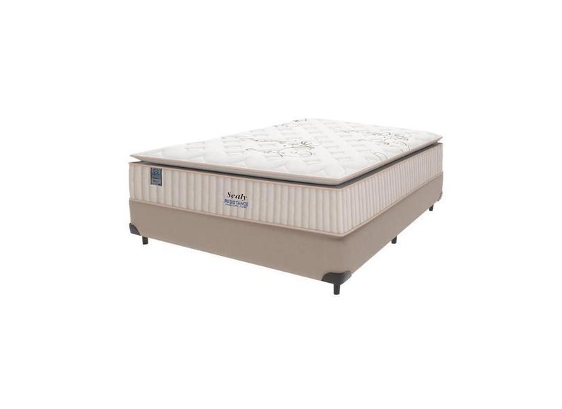 Cama Box Bege E Colchão Casal Resistance Molas Lfk Sealy