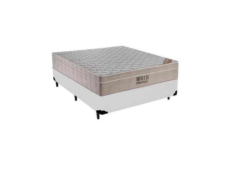 Cama Box Branca Casal Sintético + Colchão Molas Ensacadas AirTech Spri