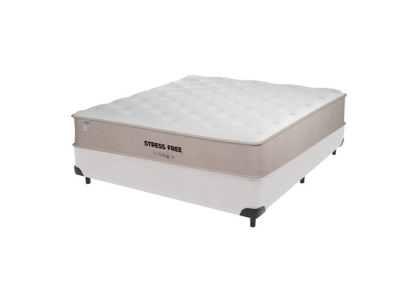 Cama Box Branca e Colchão Casal StressFree espuma D28 Unique